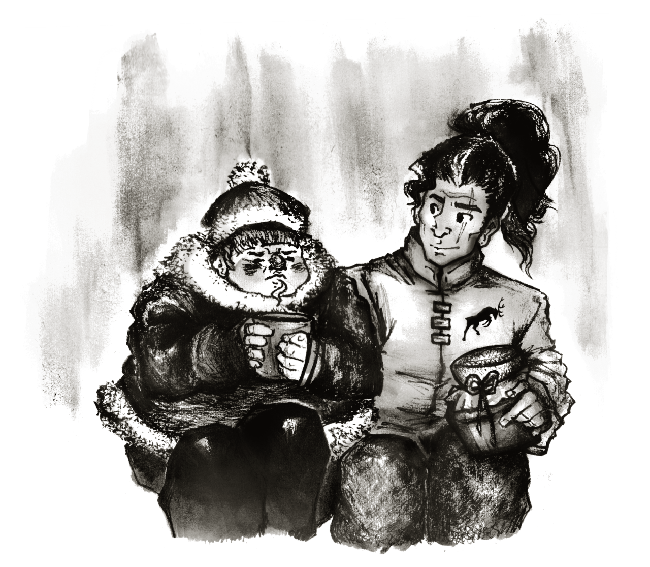 Argument ensues among the Out Islanders, leading to a formal request from the Hetgurd delegation that Elliania withdraw her challenge to Dutiful; she refuses, with clear regret. The refusal is noted formally, with claims made against future loss and accepted as valid. Fitz takes the opportunity to ask the Fool about arrival on the island, only to be told “I flew”; a brief discussion about self-determination follows before the Fool walks away. Web takes his place, and Fitz and Web confer briefly. Arrangements to continue the expedition follow, and Fitz has to chivvy Thick along with the rest of the group. Notably, the Fool strikes camp swiftly and alone, and he prompts caution from most, interest from Swift and Cockle, and ire from Civil. Fitz takes note of the attitudes on display.