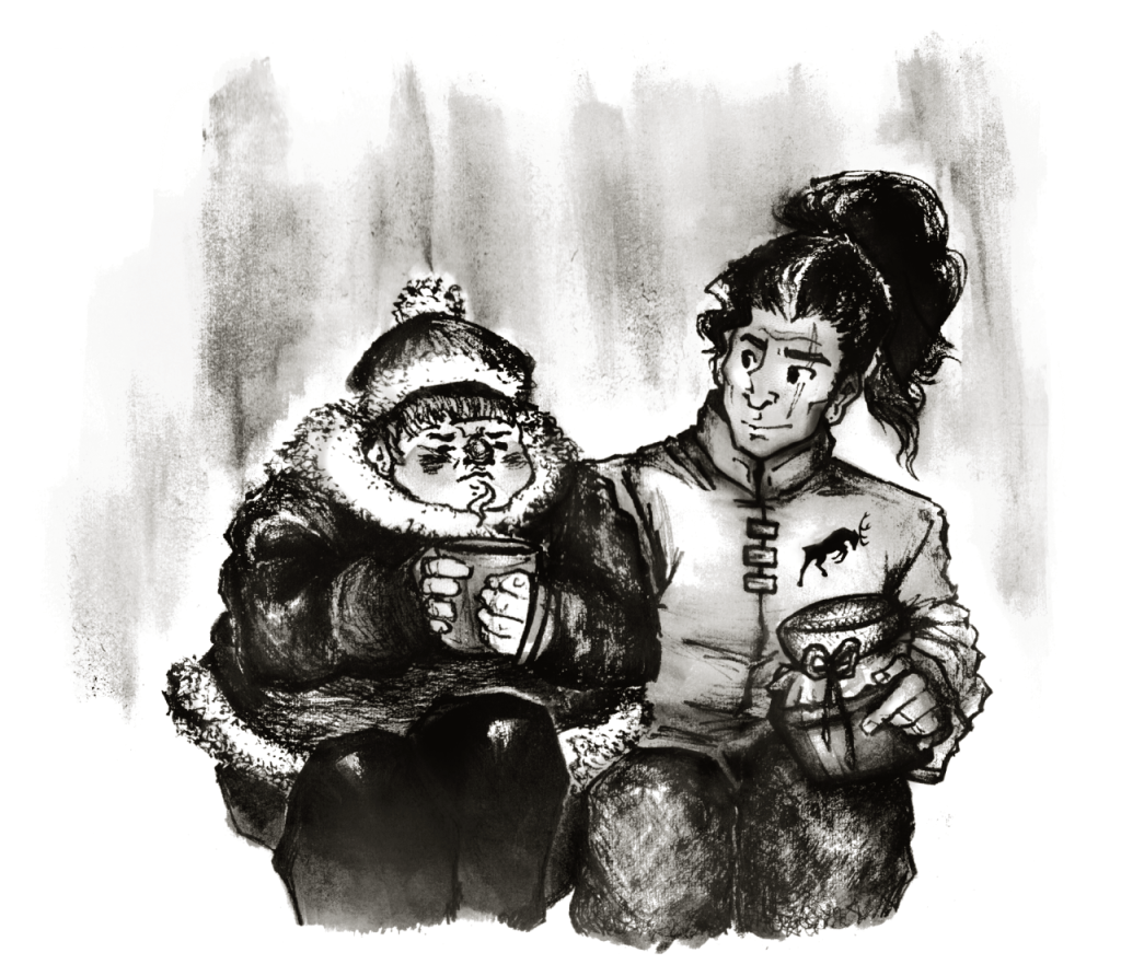 Fitz tends to the Fool after, and the two confer quietly about Civil’s former intended and Piebald entanglement. Talk turns to the Black Man, the Fool noting the pronounced portentousness about him. Talk pivots to fate, and Fitz asserts that he cannot be as he is and stand by while the Fool faces death. And, at the Fool’s request, Fitz bunks in his tent that night.